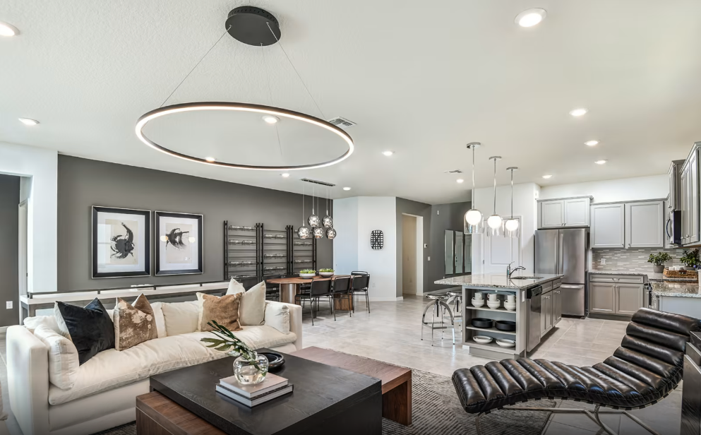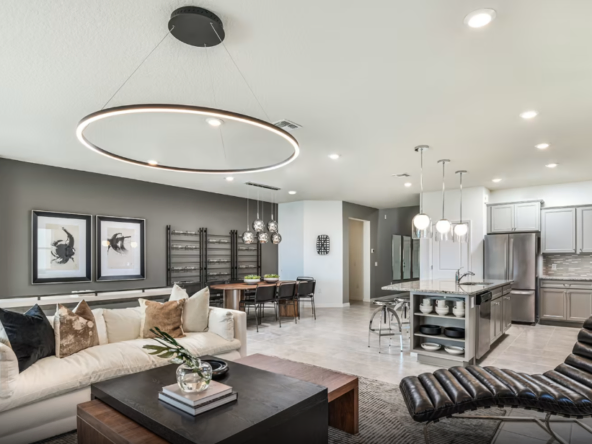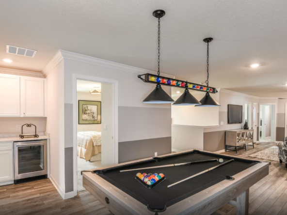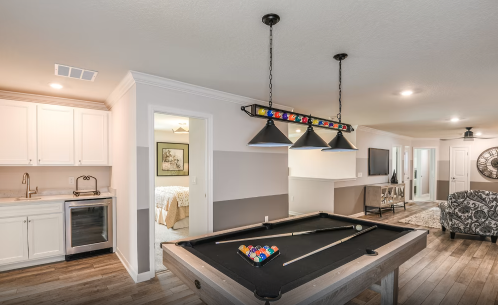 O Baymont impressiona com uma entrada grandiosa e um saguão de dois andares. Projetada para entretenimento, esta casa de férias oferece uma cozinha integrada com áreas de jantar e convivência acolhedoras. As portas de vidro deslizantes de 12 pés se abrem para a varanda coberta, o pátio e a piscina privativa, criando o ambiente perfeito para momentos inesquecíveis, tanto dentro quanto fora de casa.